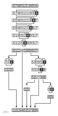 3. Kết hợp: Trộn hai mảng con đã sắp xếp để tạo thành mảng mới lớn hơn cũng được sắp xếp.