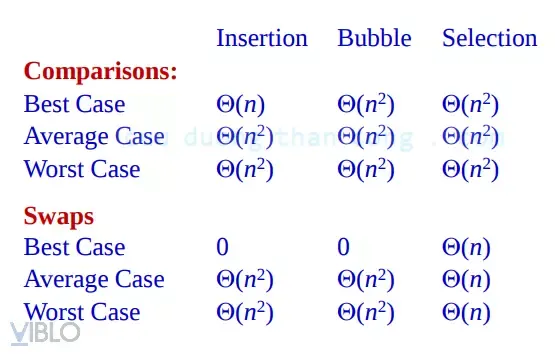 Bảng so sánh 3 thuật toán O(n²)