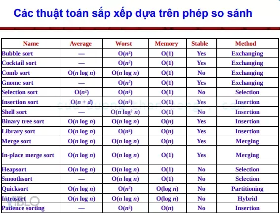 Thuật toán Best Case Average Case Worst Case Space Stability