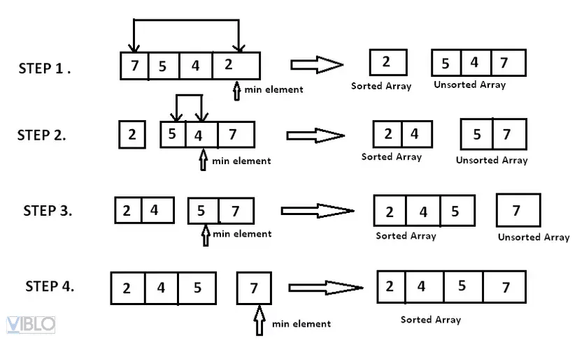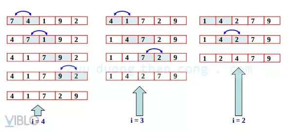 4. Lặp lại cho đến khi mảng cạn kiệt.
