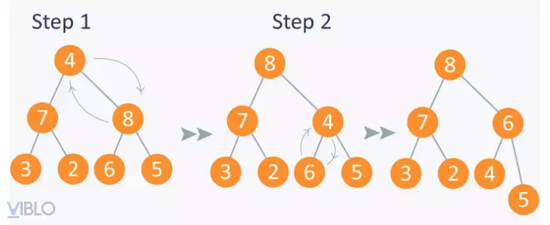2. Lấy phần tử gốc (lớn nhất) hoán vị với phần tử cuối cùng.