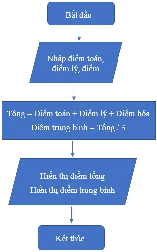 Các bài toán tính toán tuần tự thường không có nhánh rẽ, điều này giúp việc minh họa sơ đồ hoạt động trở nên đơn giản và gọn gàng hơn. Đối với bài toán tính điểm trung bình của ba môn học hoặc tính chu vi, diện tích hình tròn, chúng ta chỉ cần tập trung vào luồng nhập – xử lý – xuất.