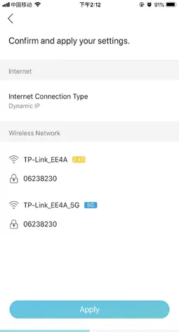 Trước khi kết thúc, ứng dụng Tether sẽ hiển thị một bảng tổng hợp các thiết lập. Hãy rà soát lại một lần nữa các thông số về mạng WAN và Wi-Fi. Khi bạn nhấn “Apply”, router sẽ lưu cấu hình vào bộ nhớ Flash và tiến hành khởi động lại các tiến trình mạng. Đây là bước then chốt trong quy trình cài đặt router tp link.