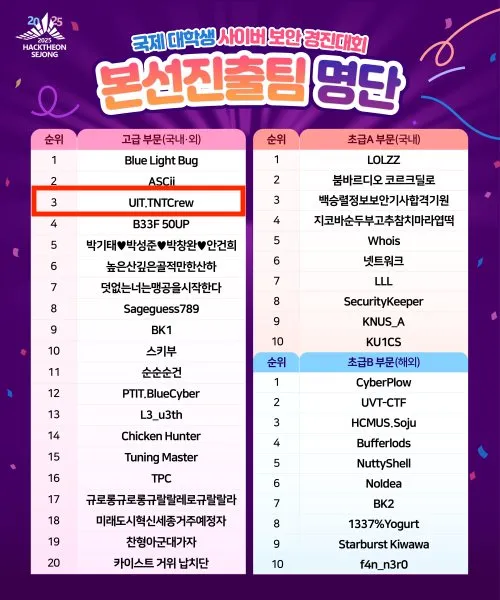 Các đội tuyển của UIT như “Alternative für Knights” hay “UIT.TNTCREW” đã liên tục đạt thứ hạng cao tại các giải đấu quốc tế (CodeGate, PwnMe). Thành công này đến từ việc nhà trường chú trọng xây dựng nền tảng lý thuyết vững chắc về giao thức bảo mật kết hợp với thực hành cường độ cao. Một kịch bản CTF thường yêu cầu thí sinh phải tìm ra lỗ hổng bảo mật trong một đoạn code mã nguồn mở hoặc một dịch vụ mạng được cấu hình sai chủ ý.
