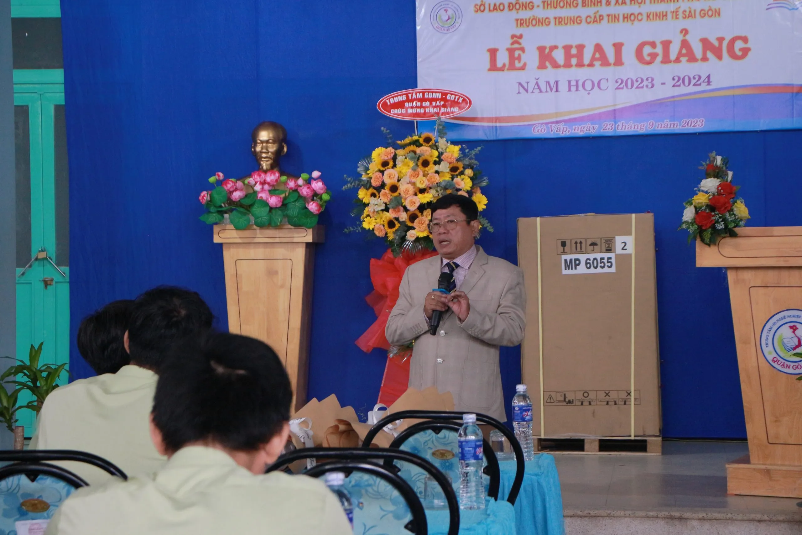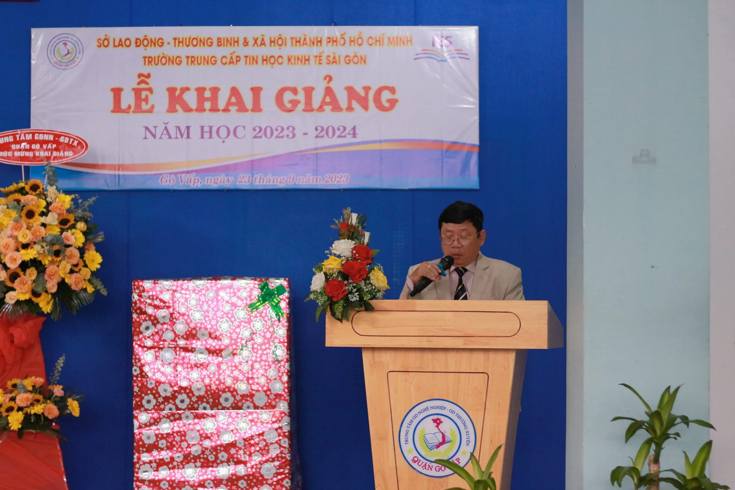 Thầy Phạm Minh Tùng – Giám đốc Trung tâm GDNN-GDTX Gò Vấp – gửi lời chào mừng đến toàn thể học sinh, cán bộ giáo viên và nhân viên hai đơn vị. Thầy bày tỏ kỳ vọng về sự hợp tác hiệu quả giữa trường trung cấp tin học kinh tế sài gòn và Trung tâm trong năm học 2026.